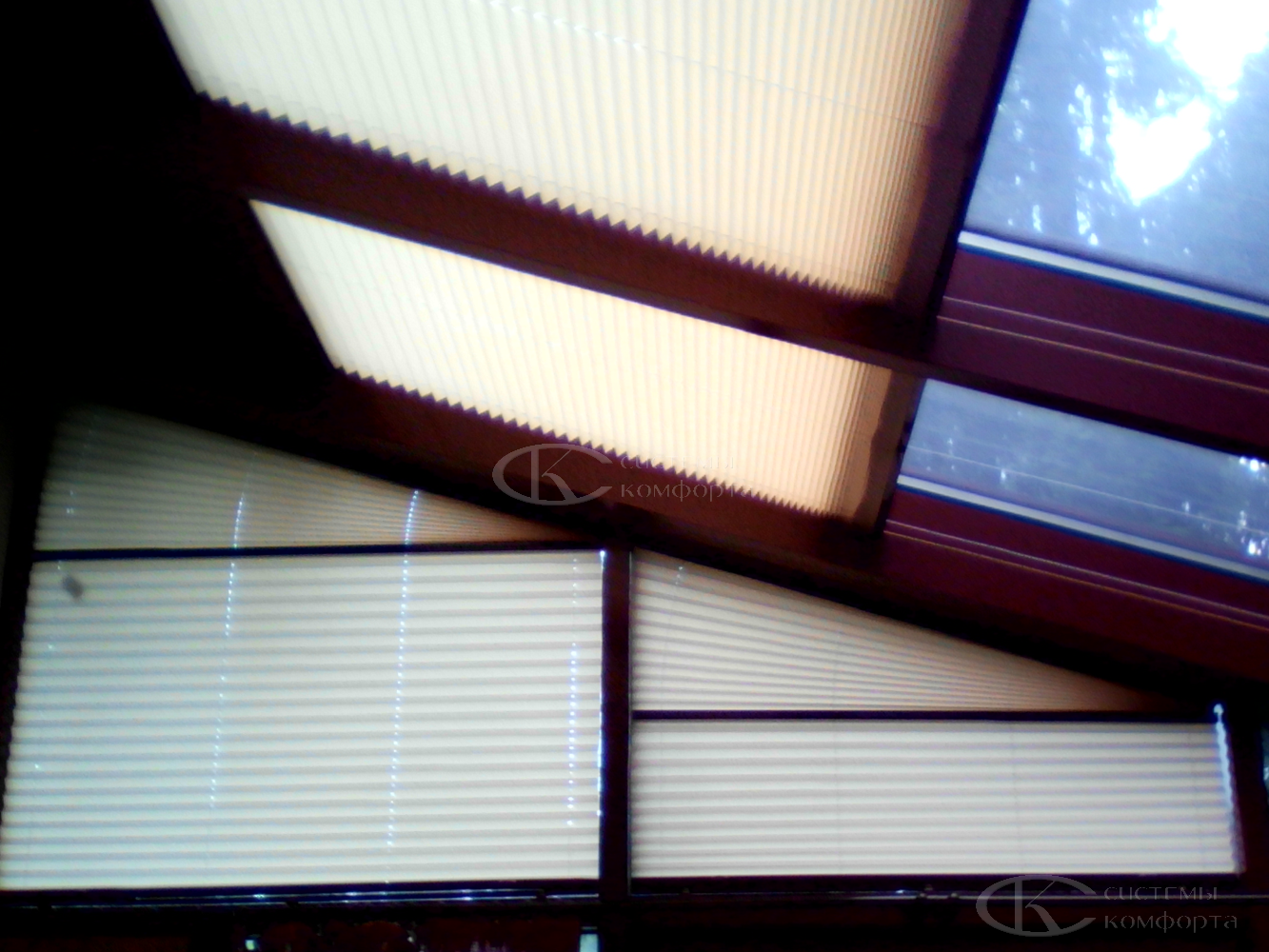 Они могут быть установлены непосредственно в раму без сверления, на створку или на сам проем, что делает их удивительно универсальными. Особенно ценятся плиссе для оформления мансардных и наклонных окон, где их способность повторять геометрию проема и легкость управления с помощью телескопической палки или электропривода не имеют аналогов среди других солнцезащитных систем.
