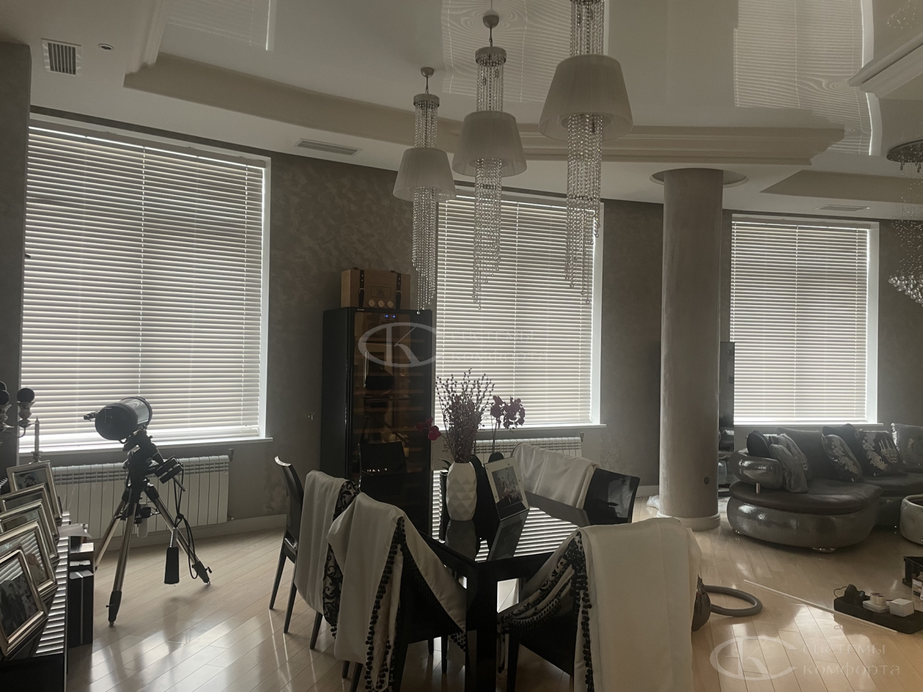 Компания «Системы комфорта» предлагает горизонтальные жалюзи с цветными алюминиевыми ламелями и перфорацией (опционально). Краска, которая используется в производстве, сертифицирована (экология), не выгорает на солнце и не истирается весь срок службы изделия.