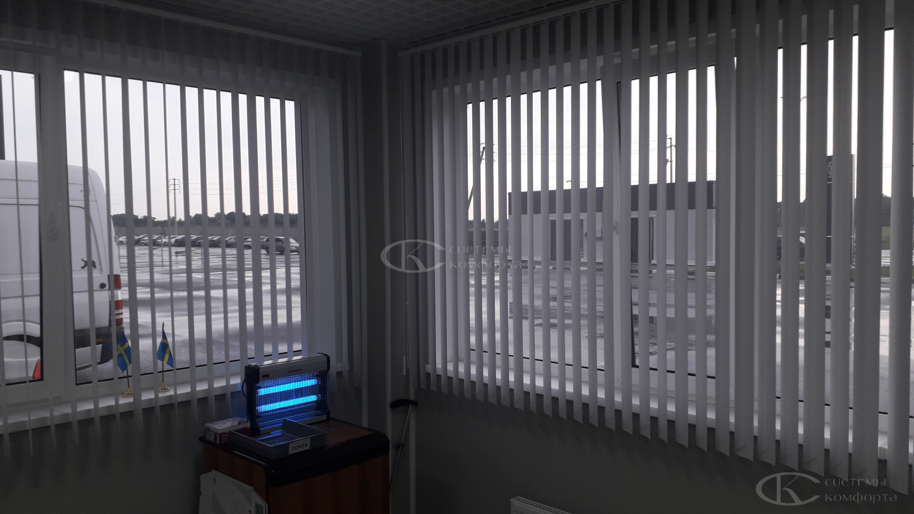 Конструкция жалюзи с алюминиевыми ламелями смотрится легко и изящно. Это практичное решение не только для медицинских и офисных учреждений, но для кухни или любой жилой комнаты.